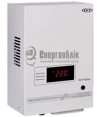 Автоматичний регулятор напруги АСН-300 Н призначений для роботи з побутовими електроприладами з потужністю споживання до 300 Вт від мережі 220 В, 50 Гц забезпечує автоматичний контроль і регулювання напруги мережі, а також захист від зниженої і підвищеної напруги та високовольтних імпульсів.