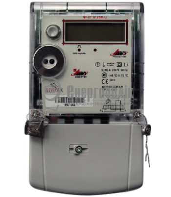 NP 07 - це однофазний електронний лічильник призначений для вимірювання поточної напруги та спожитої електроенергії в однофазних ланцюгах змінного струму для використання кінцевими споживачами. Лічильник може самостійно відімкнути споживача від мережі, якщо споживачем перевищено максимально допустимий борг постачальнику електроенергії та автоматично під’єднати, за умови виплати заборгованості.