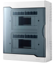 Пластикові щити виготовляються з самогаснучого негорючого пластика ABS, їм притаманні легкість та елегантність конструкції. Корпус пристроїв надійно захищено від попадання пилу та вологи, він не схильний до корозії, а також характеризується високим ступенем ізоляції, що потребує заземлення. Дверцята з затемненого скла дозволяють стежити за світловими індикаторами і станом вбудованих приладів не відкриваючи їх.