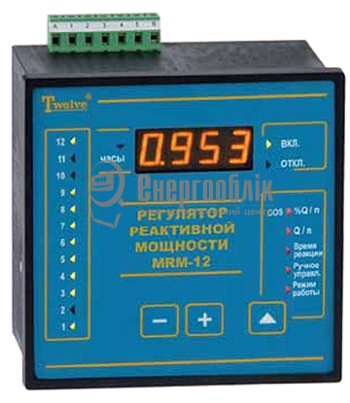 Регулятори реактивної потужності - це прилади для автоматичної координації роботи апаратів компенсації реактивної потужності. Мікропроцесорні регулятори MRM-12 (фірми Twelve Electric) обладнані датчиками вимірювання струму і напруги.