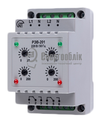 Електронне реле часу РЕВ-201 із можливістю затримки включення комутує електричні кола змінного струму 220 В / 50 Гц та кола постійного струму 24-100 В має регулятор часу ввімкнення від 0 до 220 с.
