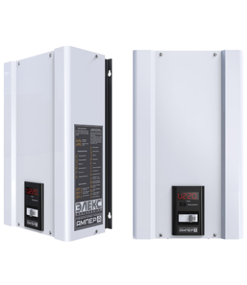 Встановлювати і експлуатувати стабілізатор Ампер рекомендується в сухих і отоплювальних приміщеннях. Настінне встановлення рекомендується робити у вертикальному положенні, залишивши зверху та знизу 10-15см вільногопростору. Підключення здійснюється до існуючої проводки через клемну колодку (25-80А) або через шнур з вилкою і розеткою (10-16А)