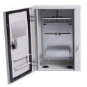 Шафи мають оглядове вікно та закриваються на ключ, що дозволяє обмежити доступ сторонніх осіб до лічильника та автоматичних вимикачів.